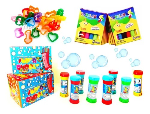 10 Massinha De Modelar + 10 Bolha De Sabão + 20 Forminhas