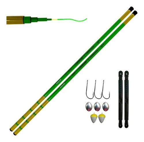Inclui acessórios: sim anzois chumbadas e boias com enroladores de linha (polinha ) para cada vara jau pesca