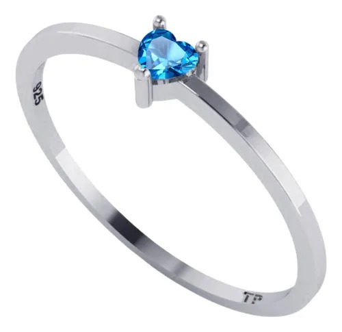 Anel Solitário Topázio Azul Coração Pura Prata 925 – Exclusivo