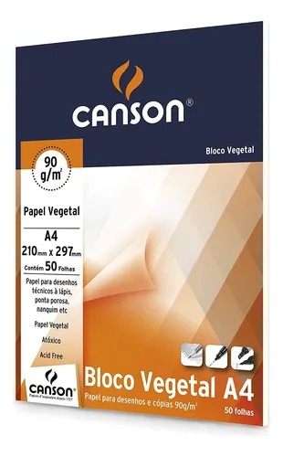 O Bloco Vegetal Canson® tem 90 g/m² e é ideal para estudos, gráficos, desenhos geométricos e projetos.