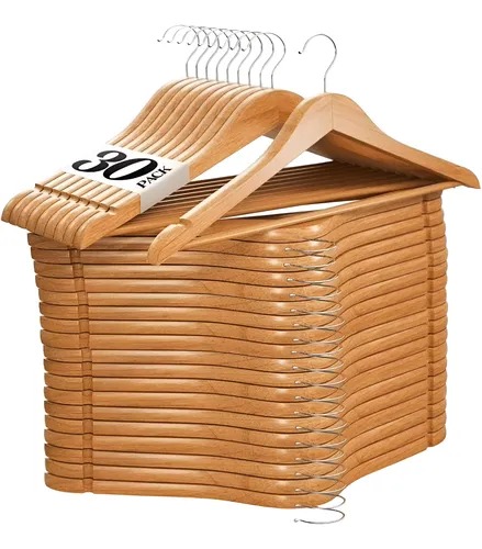 Cabides De Madeira Marfim Adulto Roupa Calça Kit 30 Peças
