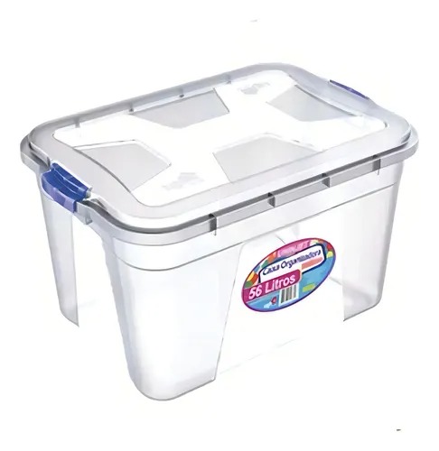 A Caixa Organizadora de 56 litros é ideal para armazenar itens volumosos, roupas de temporada, brinquedos e muito mais. Seu design espaçoso permite acomodar uma variedade de itens, enquanto o material resistente garante durabilidade a longo prazo.