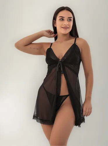 Camisola Sexy Aberta Fenda Tule Renda Calcinha Fio Dental