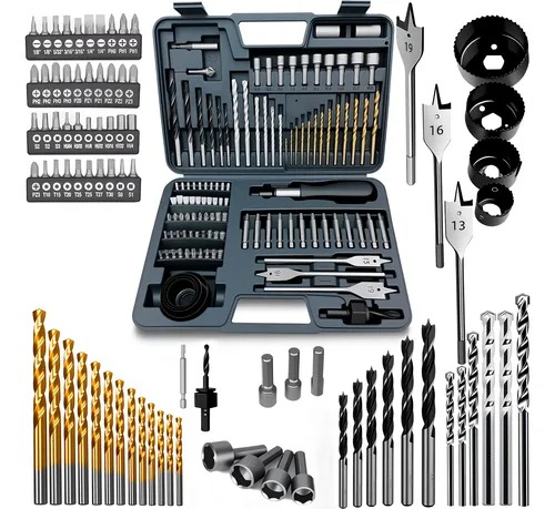 Este kit é uma combinação de ferramentas eficiente, contendo 110 peças que abrangem diversas aplicações como perfuração, fixação de parafusos e trabalhos em madeira, atendendo a necessidades variadas de trabalho.