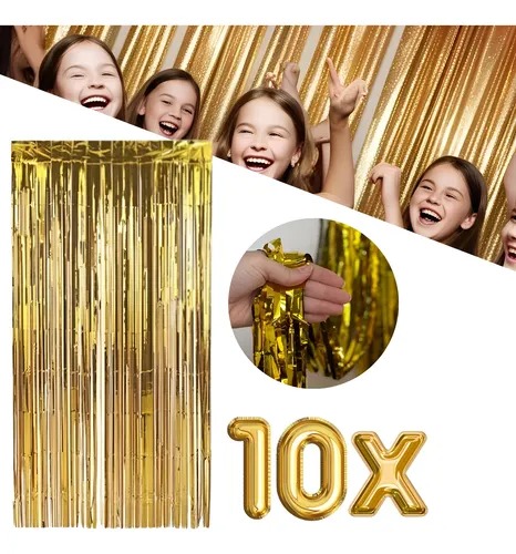Kit 10 Cortinas Metalizada Lisa Franja 2x1m Festa Fitas