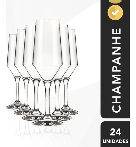 As taças são de vidro, garantindo transparência e qualidade no material. E possui 186ml de capacidade, que proporciona a medida ideal para um ótimo champagne.