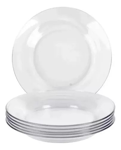 Kit Jogo com 12 Pratos Fundo Oriente em Vidro 22cm para Refeição
