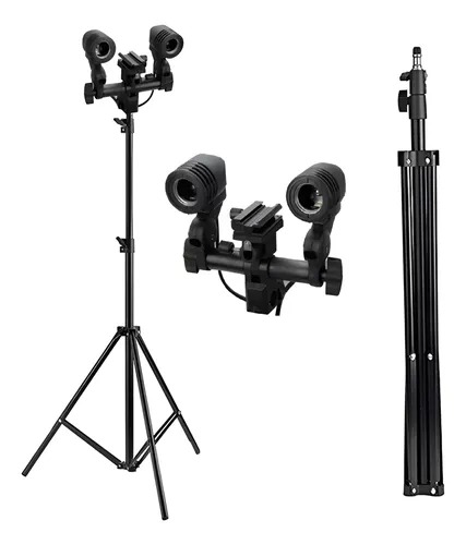 Kit soquete Bocal E27 para até duas lâmpadas e flash Speedlite Canon, Nikon, Sony, Godox, Fuji, etc.