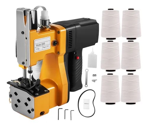 Essa máquina foi projetada para ser leve e portátil, sua carcaça de alumínio garante a leveza e permite que seja levada a qualquer lugar. Tem corte automático da linha, pois possui um eficiente sistema de navalhas que corta a linha após a costura da sacaria.