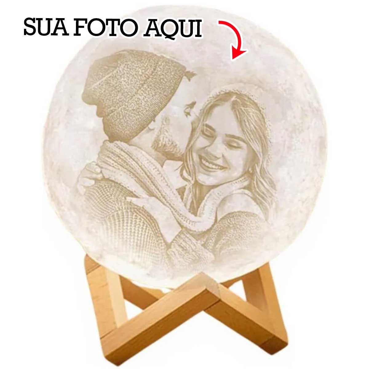 Luminária Lua Cheia 3d Usb 11cm Personalizada com Foto e nome abajur