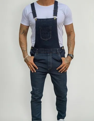 Macacão Jardineira Azul Escuro Destroyed
