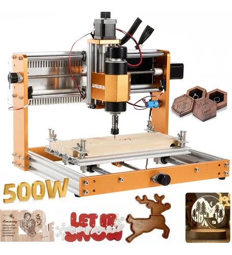 Eixo de 500 W e Máquina Router CNC de Alta Velocidade: O eixo de 500 W possui um design robusto e versátil. Sua alta potência permite um desempenho consistente, mesmo ao cortar materiais densos como alumínio e cobre. Este potente eixo garante que sua máquina possa lidar com os projetos mais exigentes, mantendo a precisão e a eficiência. A velocidade máxima de movimento pode chegar a 5000 mm/min. A faixa de velocidade do eixo é de 0 a 12000 RPM/min.