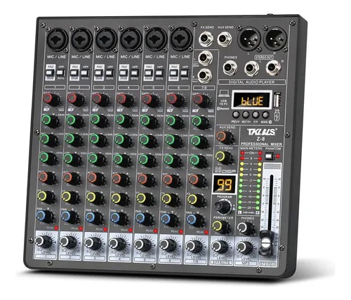 ***** usb, mp3, reprodução musical bluetooth: a consola Z8 sustenta reprodução musical através de uma interface usb, entrada MP3 ou conexão bluetooth, e pode adicionar fundo ou música acompanhante em qualquer momento para adicionar ambiente a seu desempenho ou transmissão ao vivo.