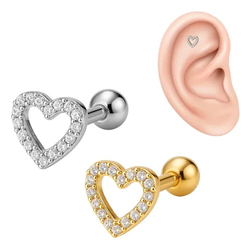 Deixe sua orelha ainda mais charmosa com esse lindíssimo e delicado piercing Labret Coração Vazado!