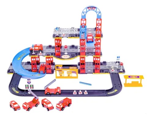 Pista De Carrinhos Bombeiros Brinquedo Infantil Corrida Vermelho