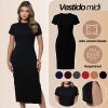 Vestido Midi Feminino Canelado Elegante Colado Gola Alta Amy
